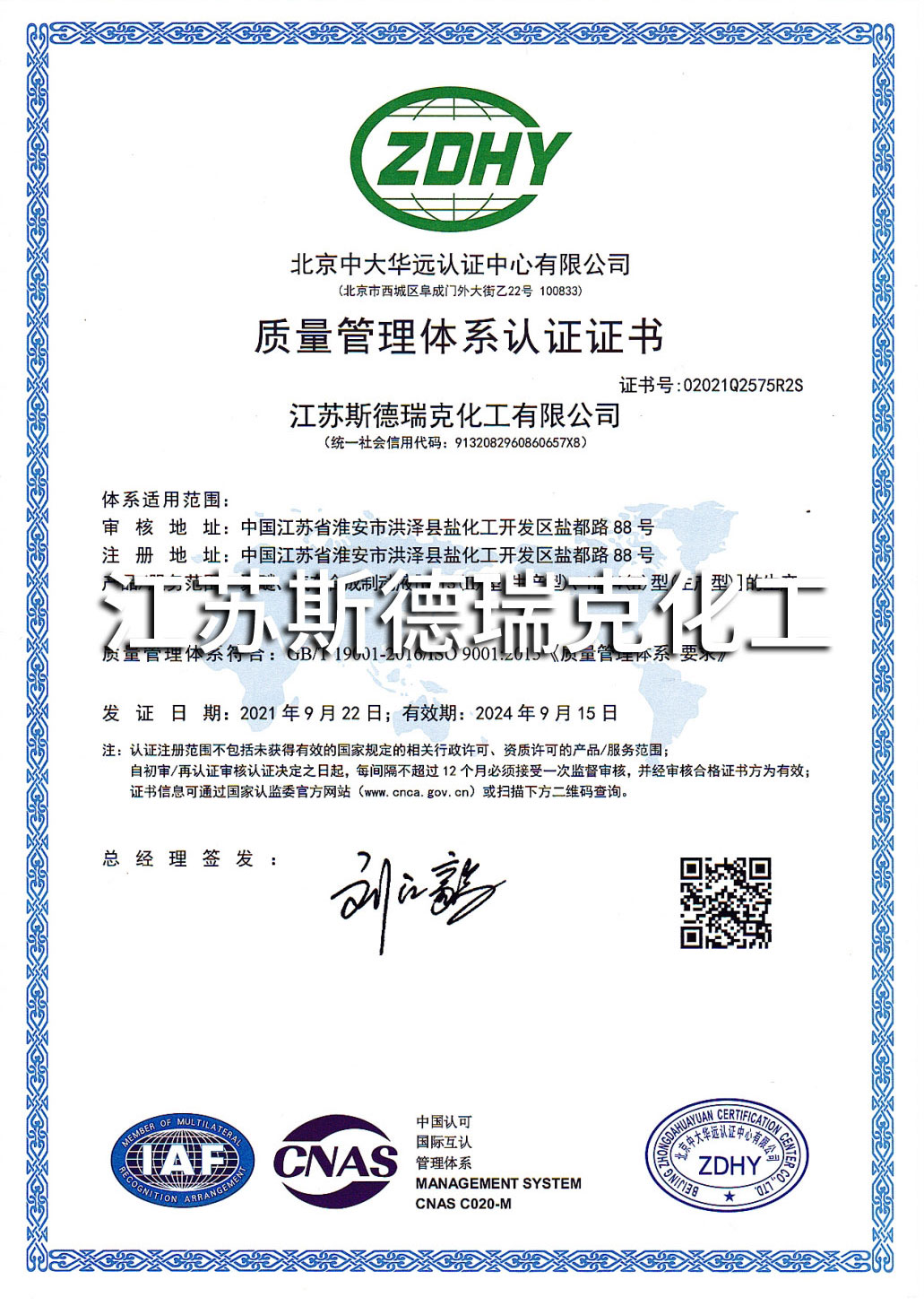 江蘇斯德瑞克化工有限公司成立于2002年,是一家集研發(fā)、生產(chǎn)和銷售一體化的“國(guó)家高新技術(shù)企業(yè)”。現(xiàn)有員工100多人,其中科技人員占20%以上;位于江蘇省淮安市鹽化工園,占地面積180畝,建筑面積達(dá)38000多平方米。